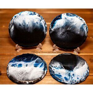 This beautiful 4 piece coaster set is perfect for any occasion. They are hand poured epoxy resin on slate.