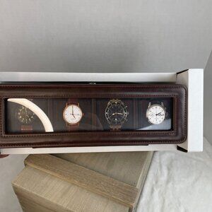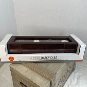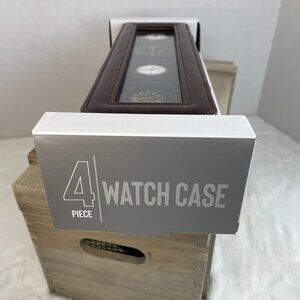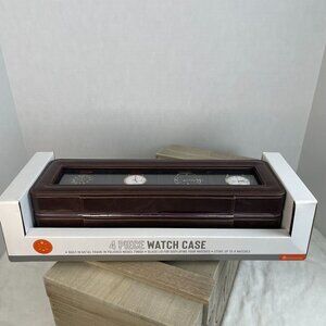 4 Piece Watch Case - Built-In Metal Frame Polished Nickel Finish Glass Lid NWT