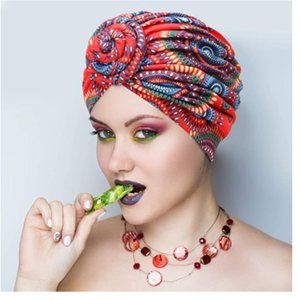 4 Pieces African Pattern Headwrap Pre-Tied Bonnet Turban Knot Beanie