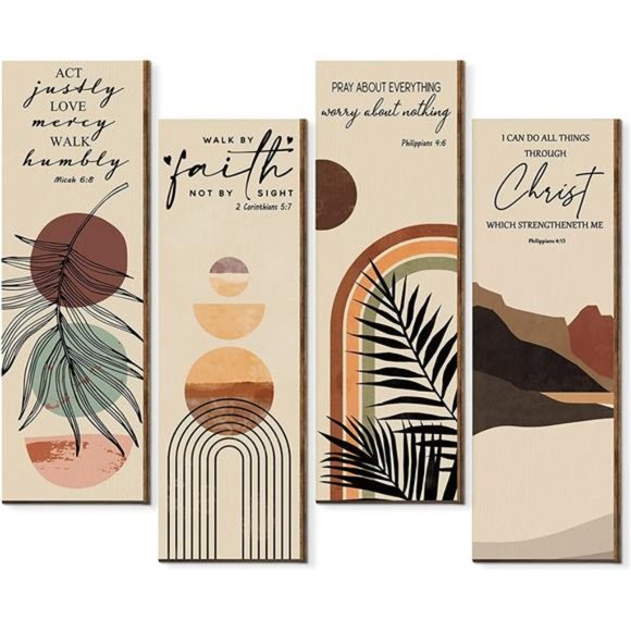 4 Pieces Bible Verses Wall Art Christian Boho Wall Decor Wooden Hanging Sign