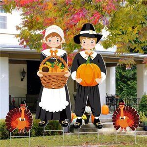 Lovely Design: the yard pilgrim decoration come with Thanksgiving design elements and autumn color; The size of boy pilgrim is about 32.28 x 10.75 inches/ 82 x 27.3 cm, and the girl pilgrim is about 31.22 x 11.02 inches/ 79.3 x 28 cm, suitable to be placed on your porch and will be eye catching, give you a nice Thanksgiving atmosphere