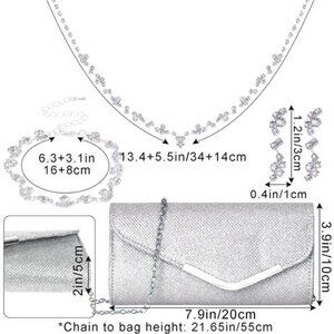 4 Pieces Silver Jewelry Set with Clutch Women Evening Rhinestone Jewelry Bling