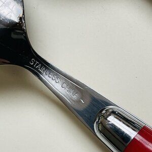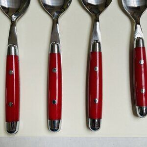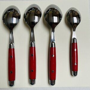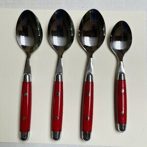4 Pieces Vintage Red Rivet Handles Stainless 3 Spoons 1 Teaspoon Replacement
