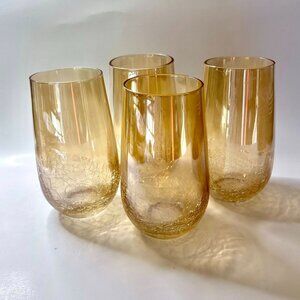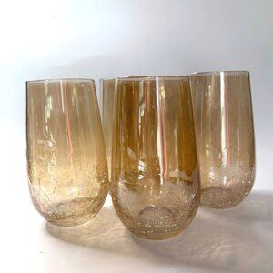 4 Pier 1 Crackle Glass Amber Golden Luster 6" Tumbler