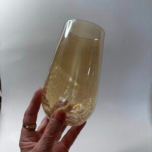 Set of 4 - 6" gorgeous amber crackle glass tumblers with a golden luster glow!