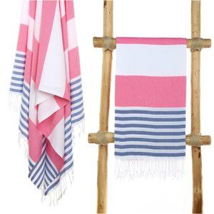 4 Pink Blue Striped 100% Turkish Cotton Beach Bath Towels Citizens of the Beach