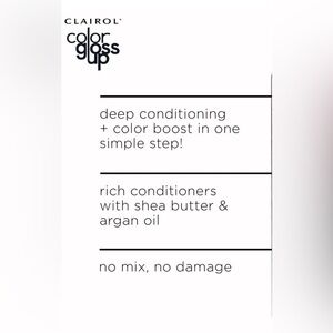 - NO MIX, NO DAMAGE: Clairol's Color Gloss products is temporary coloring that lasts up to 10 washes and results in no damage.
