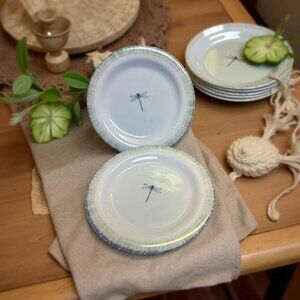 4 Portmeirion Studio Lakeside Dinner Plates Dragonfly Narrow Rim Dishwasher Micr