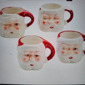 4 Pottery Barn Santa Claus Handcrafted Ceramic Mug Set Different Face Designs