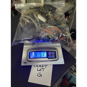 This product is a 4+ pound lot of scrap junk jewelry that is perfect for crafting, harvesting, repurposing, or salvaging. The lot includes more than 50 pieces of mixed materials in various colors, with a mix of metals and stones. The jewelry is suitable for fashion and women, and comes with a California Prop 65 warning. It is not antique or vintage, and is a mixed lot of fashion jewelry in need of repair or upcycling.