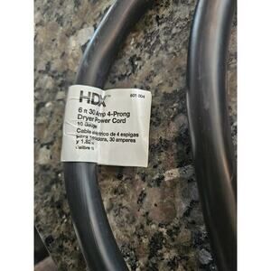 The 4 Prong 6 Ft. Universal Electric Dryer Power Cord by HDX is a versatile and essential accessory for your laundry appliances. This power cord is compatible with universal brand dryers and features a 30 Amp power source, making it suitable for various models and installations. The cord is designed for freestanding use and comes in a sleek black color, perfect for seamlessly blending into your appliance setup. Whether you need a replacement cord for your vented dryer or stacked washer & dryer, this product is the perfect fit for your home.