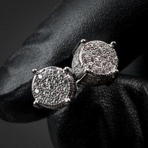 4 Prong Set Iced Sterling Silver Bullet Earrings