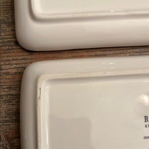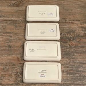 4 Rae Dunn Ceramic Trays. No chips or cracks. Never used. Slight scuffs on the back of a couple (see pix). “Selfie” has a little raised spot that’s glazed over so it’s original.