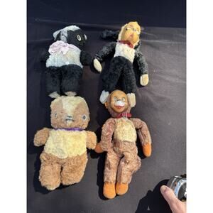 4 Rare 1950’s Vintage RUBBER FACE PLUSH STUFFED Toys Monkey Bears