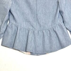 4 Rebecca Taylor TAILORED Peplum Linen Blend Blazer Jacket Light Blue