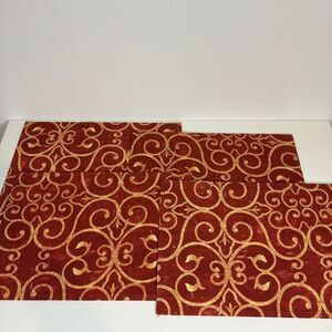 4 Red Yellow Scroll Pattern Fabric Placemats