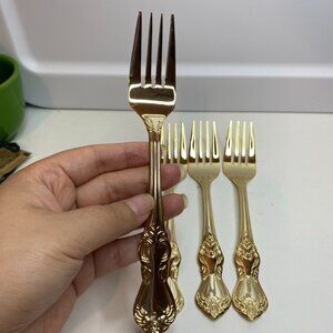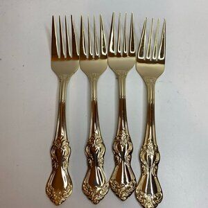 4 Reed & Barton Gold Plated Duchess of Marlborough Stainless Salad Forks…