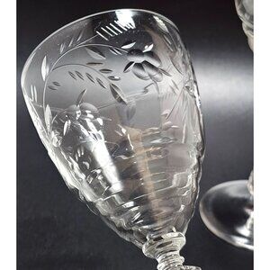4 Rock Sharpe Dixie Wine Glasses 7.75" goblets vtg Depression glass cut glass