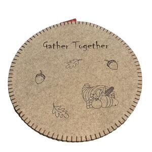 4 Round Place Mats Thanksgiving Autumn Gather Together Give Thanks Embroidered