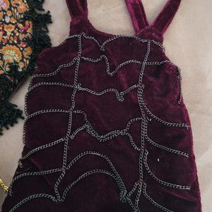 1. A Burgundy Velvet purse measuring 6" x 8" x 1 1/2", lined in satin with loose silver chains on the front and a cute velvet handle