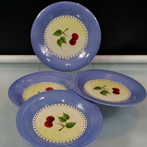 Gracey Knight Design . Blue with Cherrie . Marked As XXL Salad Plate. 9.25" Diameter.