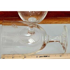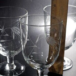 Vintage 1950s Sasaki Wheat water ice tea glasses feature etched crystal with a smooth stem design.