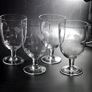 4 Sasaki Wheat Water Ice Tea Glasses etched crystal 5.25" smooth stem 1950s vtg