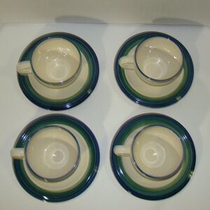 4 Sets Pfaltzgraff Stoneware Ocean Breeze Flat Cup & Saucer