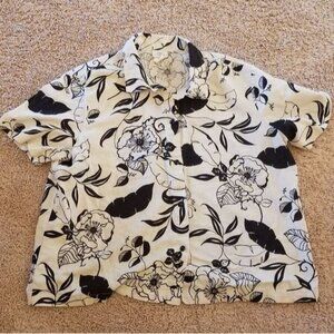 -Hot Cotton XL Short Sleeve Black & White Button up Linen/Cotton blend