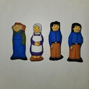 4 Small 4" Plush Doll Lot 3 Men 1 Woman Grandma Grandpa Farmer Dad