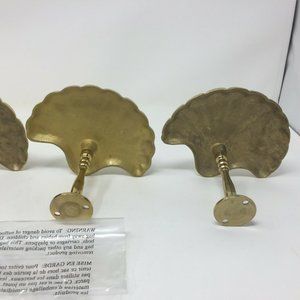 Lot of 4 Solid Heavy Bright Brass Metal Shell Curtain Tie Backs With Screws