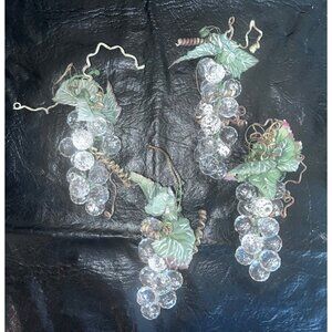 Charming vintage Acrylic grape cluster ornaments adorned with detailed leaves and gold accents.