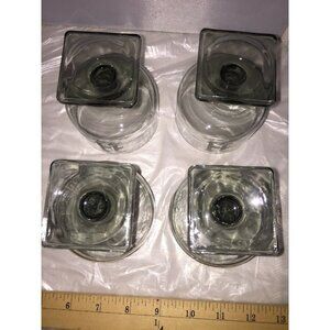 4 Square Base Smoke Glasses Monogram H Atomic Cocktail Bar Ware Vtg Mid Century