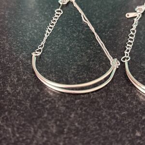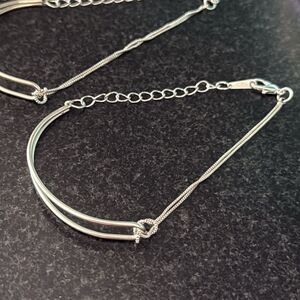 Each bracelet features a partial asymmetrical bangle joined by two distinct chain styles.