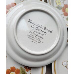 4- Stoneware 6" Plates, Mountain Wood Collection Trellis Blossom Vintage Floral