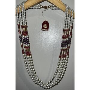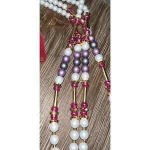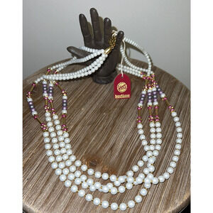 4 Strand White Purple Pink Beaded Costume Necklace - Faux Pearls - Pinch Clasp