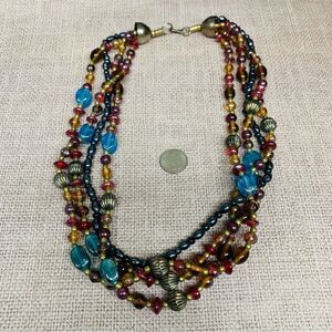 4 Strand Multi Color Glass Bead Exotic Style Necklace