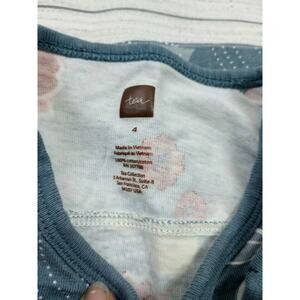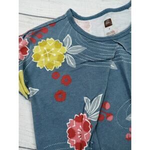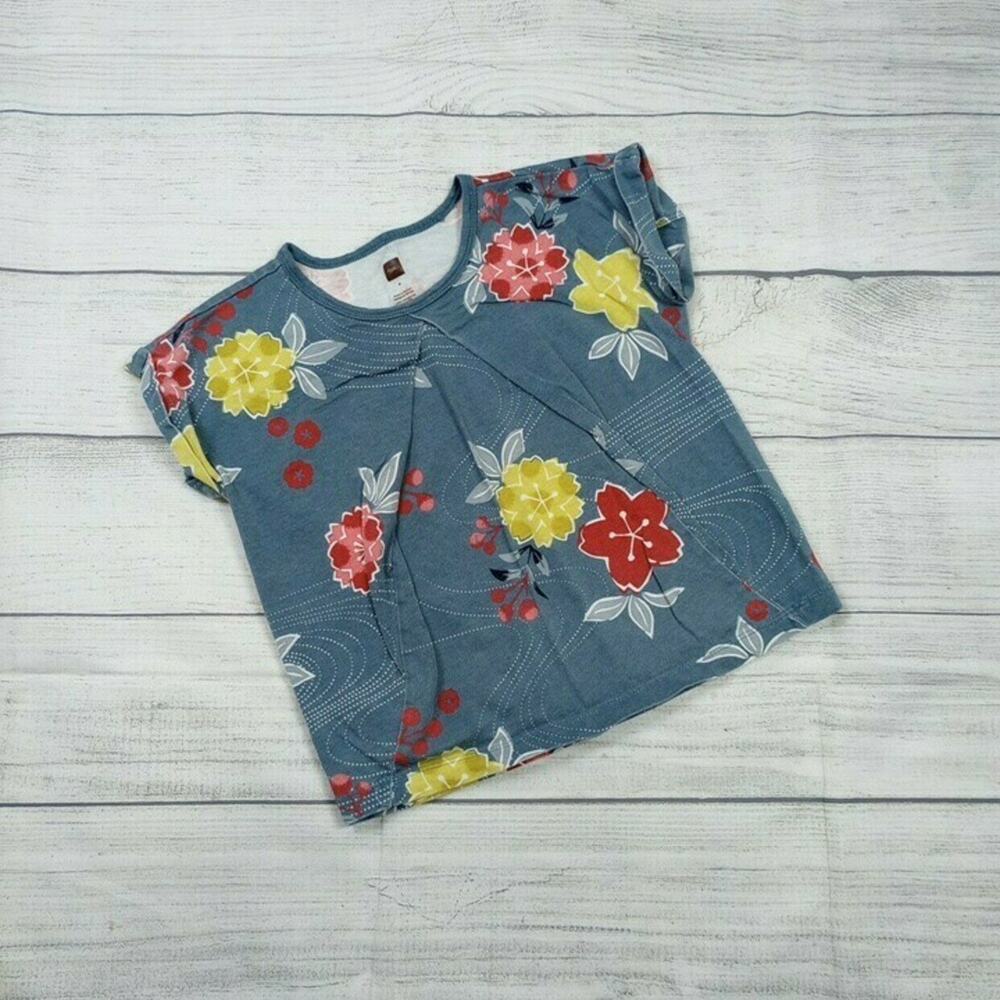 GUC Tea Collection Riko Origami tee. Gray with red and yellow flowers. Tulip pleat on the front. Light wash wear/starting to pill