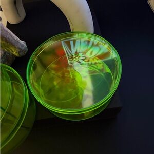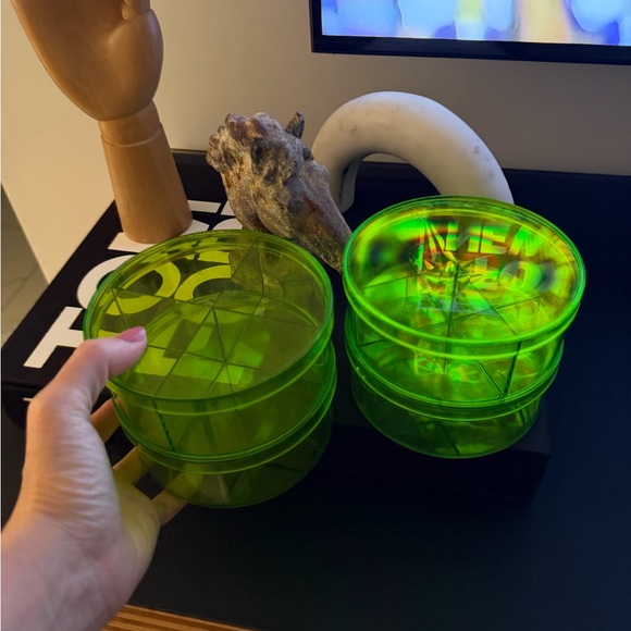 Bright neon green circular organizers. Perfect for storage solutions.