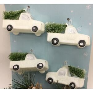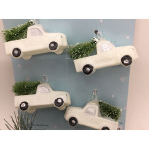 4 Farmhouse White Vintage Truck Mini Tree Christmas Tree Ornaments