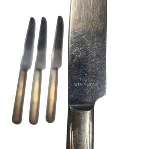 4 Tudor Plate Oneida Friendship-Medality Dinner Knives 9⅛" 1932 Stainless Blade