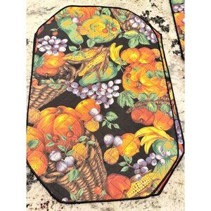 4 VTG Fall Harvest Quilted Placemats Cornucopia Pumpkin Thanksgiving table top