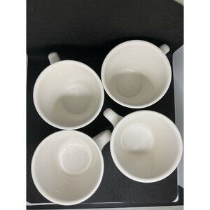 Set of 4 vintage Homer Laughlin 6 oz mugs in classic white. Perfect for coffee, tea, or display. Durable restaurant ware with timeless farmhouse charm. Made in the USA. Gently used, no chips or cracks.