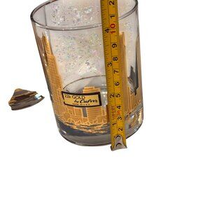 Set of four vintage mid-century modern 22K gold Marshall Fields by Culver Skyline barware cocktail glasses. Exquisite design perfect for collectors and cocktail enthusiasts. Ideal for home bars and entertaining. Unique skyline pattern adds a touch of elegance to your drinkware collection. Each holds 12 ounces.like new, one with sticker. Comes from a smoke free home.