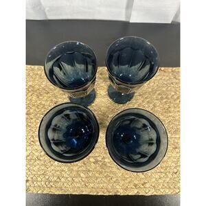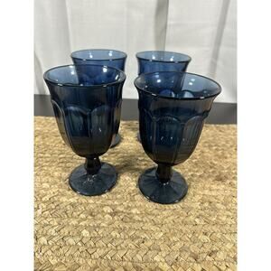 4 VTG PROVINCIAL COLONIAL DARK BLUE WINE/water GOBLET GLASS