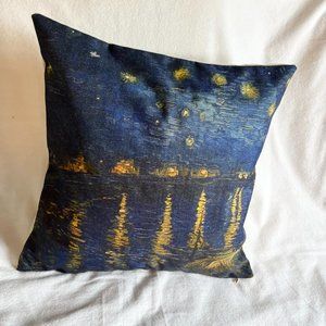 These pillow covers are a representatoin of a few masterpieces. Included are the materpieces: “Starry Night’ and ‘Irises’. Each pillow cover (Pillows not included) has the print on the front and a plain cream back. The zippers are invisible and fully functioning. One of the covers, ‘Starry Night Over the Rhone’, seam was resewn.