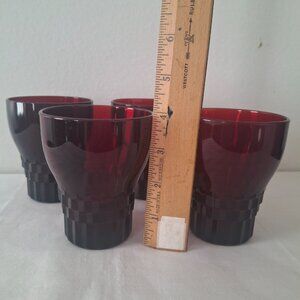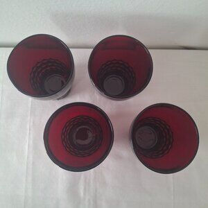4 Vintage Anchor Hocking Royal Ruby 8 Ounce Water Tumblers Windsor Cube Pattern