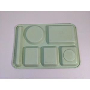 Add some vintage flair to your dining experience with these four cafeteria trays from Arrowhead. Made in the USA in Cleveland, OH, these medium-sized, rectangular trays measure 14 inches in length and 10 inches in width. With six compartments and a solid multicolor pattern, this tray is perfect for all occasions, whether you're serving food and wine or just enjoying a casual meal at home. The glossy finish and durable plastic material make it a sturdy and stylish addition to your dinnerware collection.