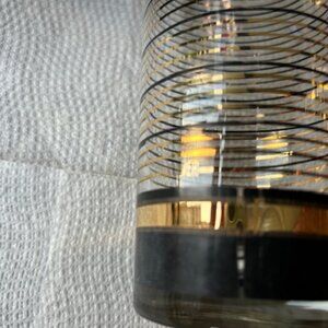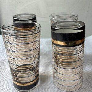 4 vintage black & gold Culver glasses (22 carat gold), 2 3/4" diameter, 5 9/16" high. The glasses are marked Culver and are in very good condition with some scratches.