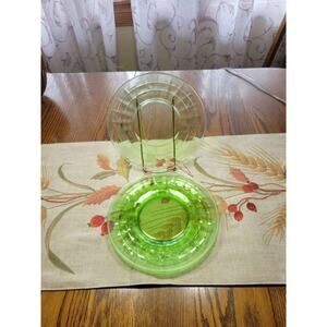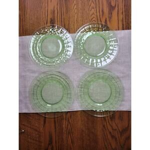 4 Vintage Block Optic Salad Plate, Green Depression Anchor Hocking Uranium Glass